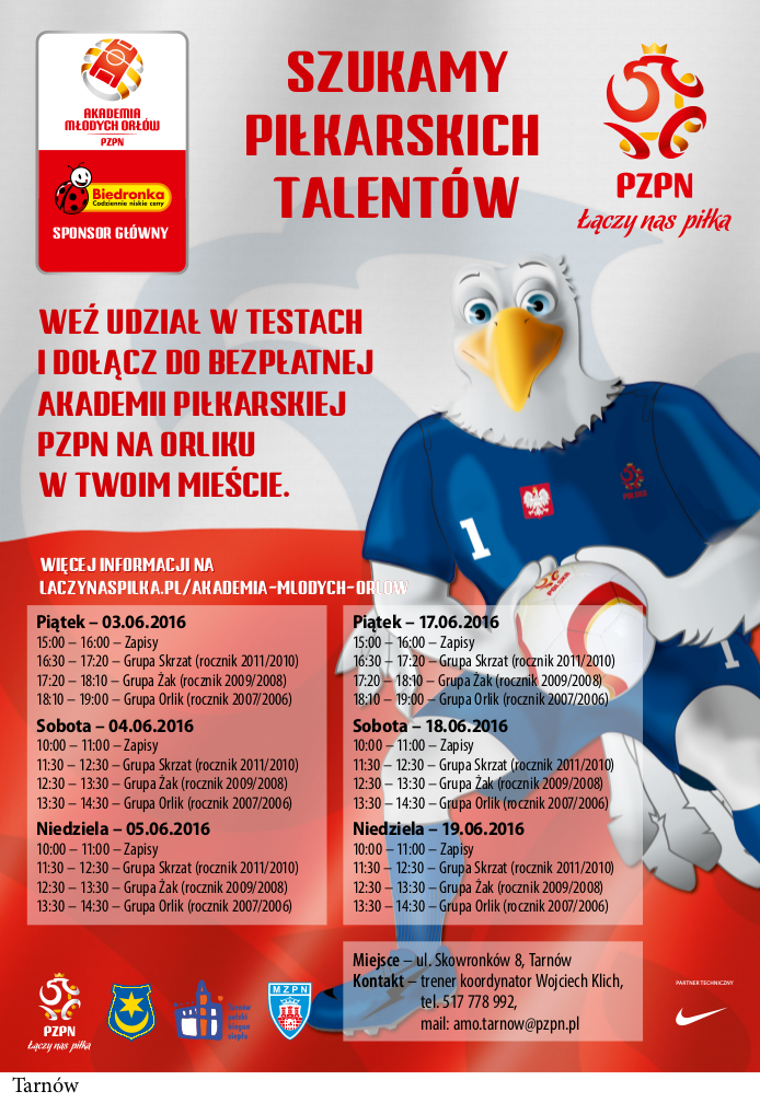 Akademia Młodych Orłów to bezpłatna inicjatywa, która jest współtworzona z wojewódzkimi związkami piłki nożnej, miastami i Biedronką – sponsorem głównym projektu.